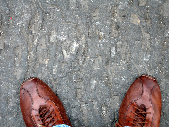 Die Abdrücke stammen von den Ständern der Roller und Motorräder, die dort abgestellt werden. Und da vor jedem Haus typischerweise die Roller der Bewohner stehen, gleichen sich benachbarte Abdrücke in der Regel, da sie im Laufe von vielen heißen Tagen vom selben Roller stammen.