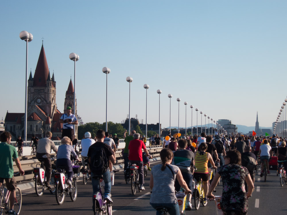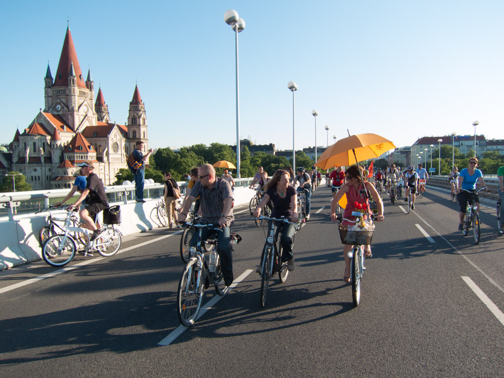 Anlässlich der Konferenz Velo-City Vienna 2013 fand am 13. Juni der Radcorso statt, eine Art offizielle Critical Mass mit 4.400 Radlern, die einmal rund um Wien auf abgesperrten Straßen die Radkultur und sich selbst feierten.